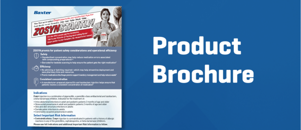Please ask your Baxter sales representative how Zosyn premix can help your healthcare operations.
